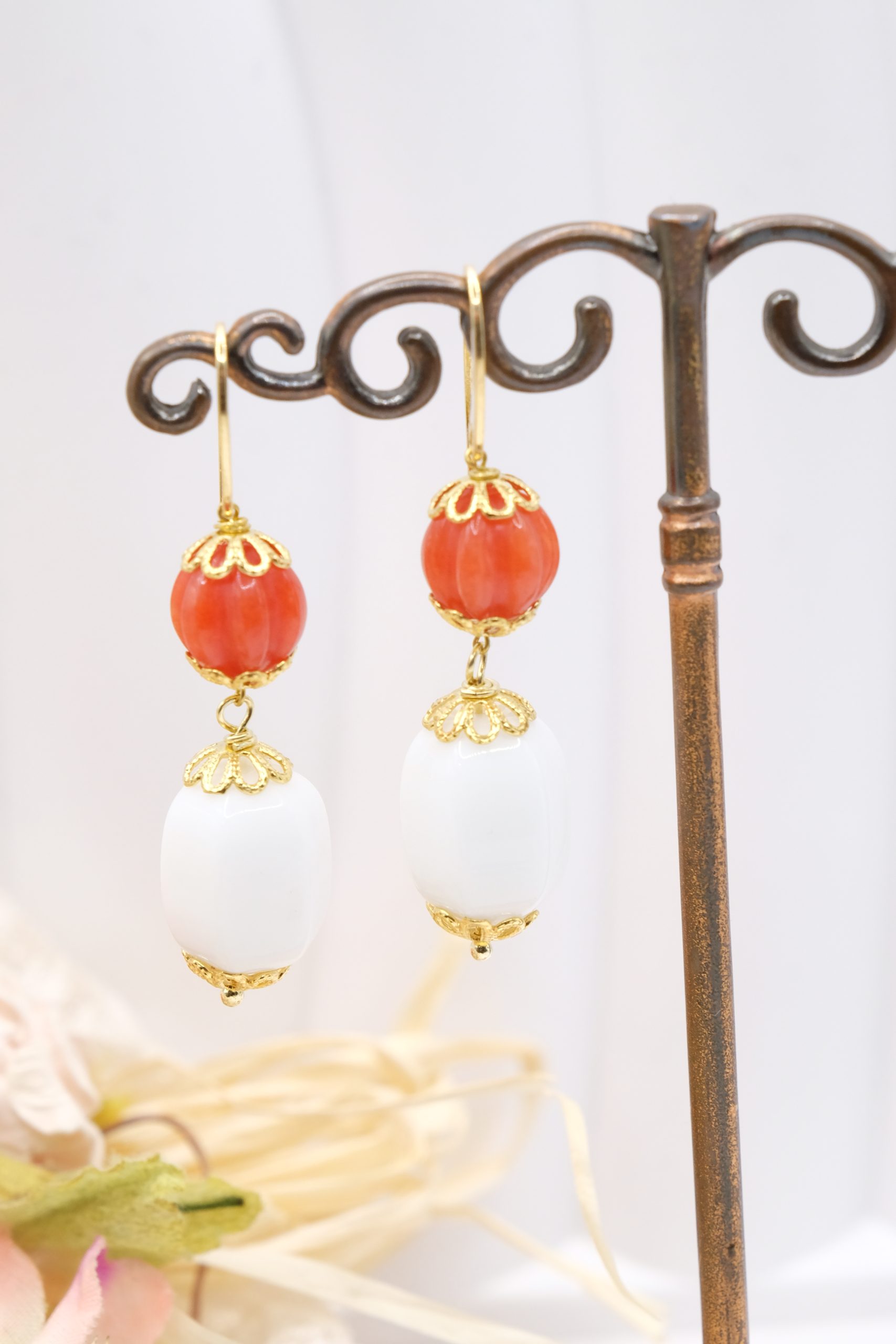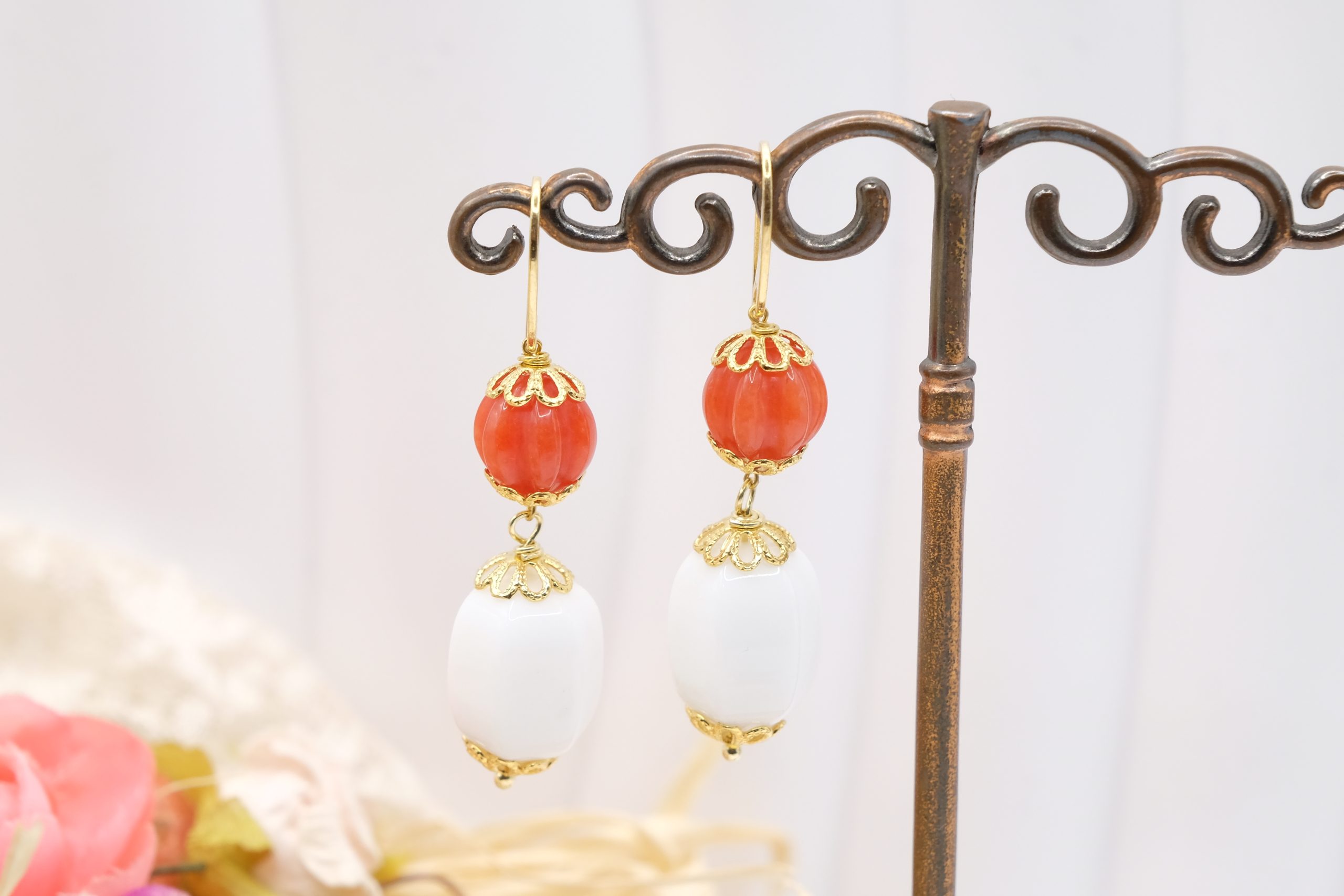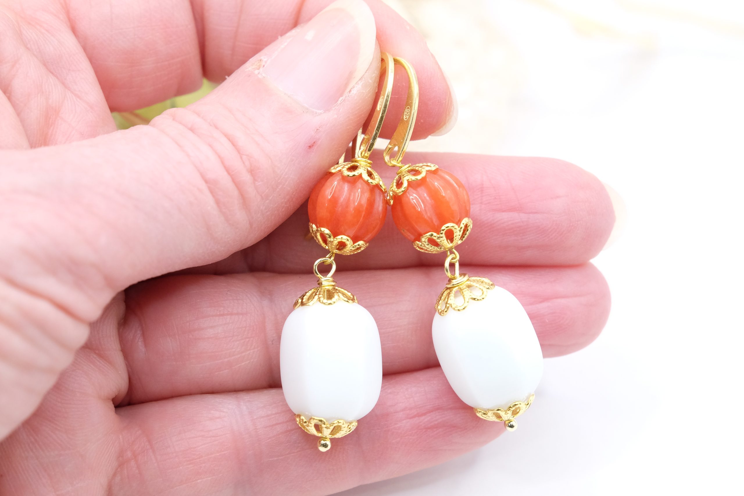 Orecchini Corniola e Agata Bianca in Argento 925