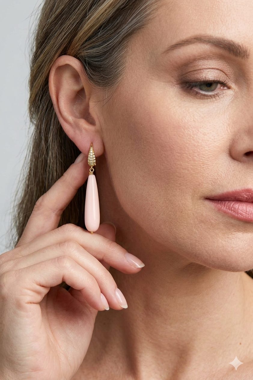Orecchini raffinati e femminili, caratterizzati da una goccia lunga in pasta di corallo rosa, dal colore delicato e luminoso 🌸
