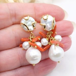 Orecchini Grappolo Perla Corallo Perle Perno