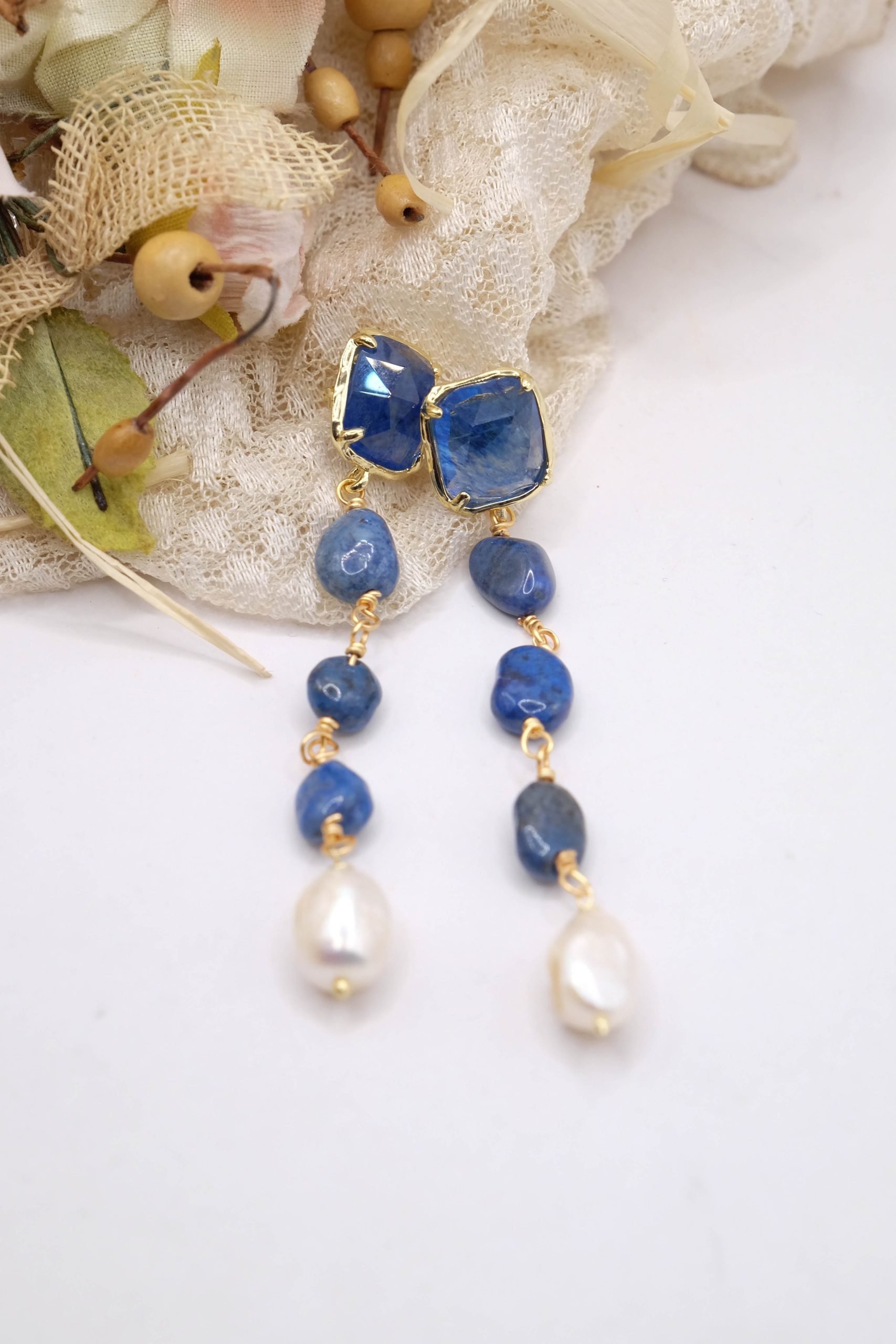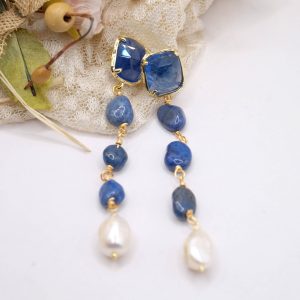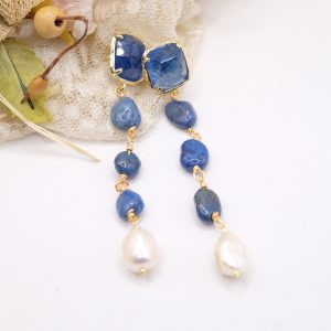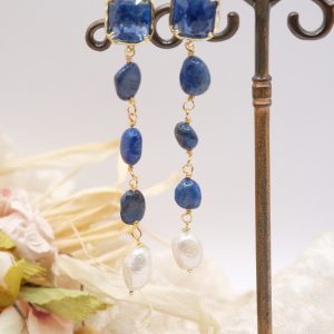 Orecchini Lunghi Lapis, Perla e Occhio di Gatto