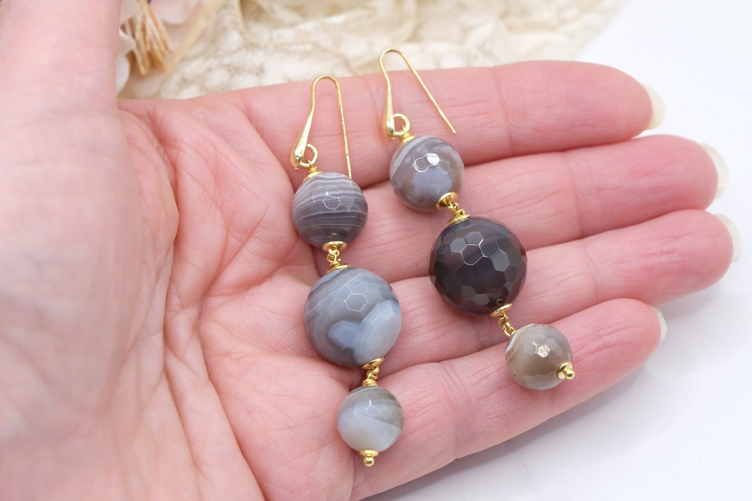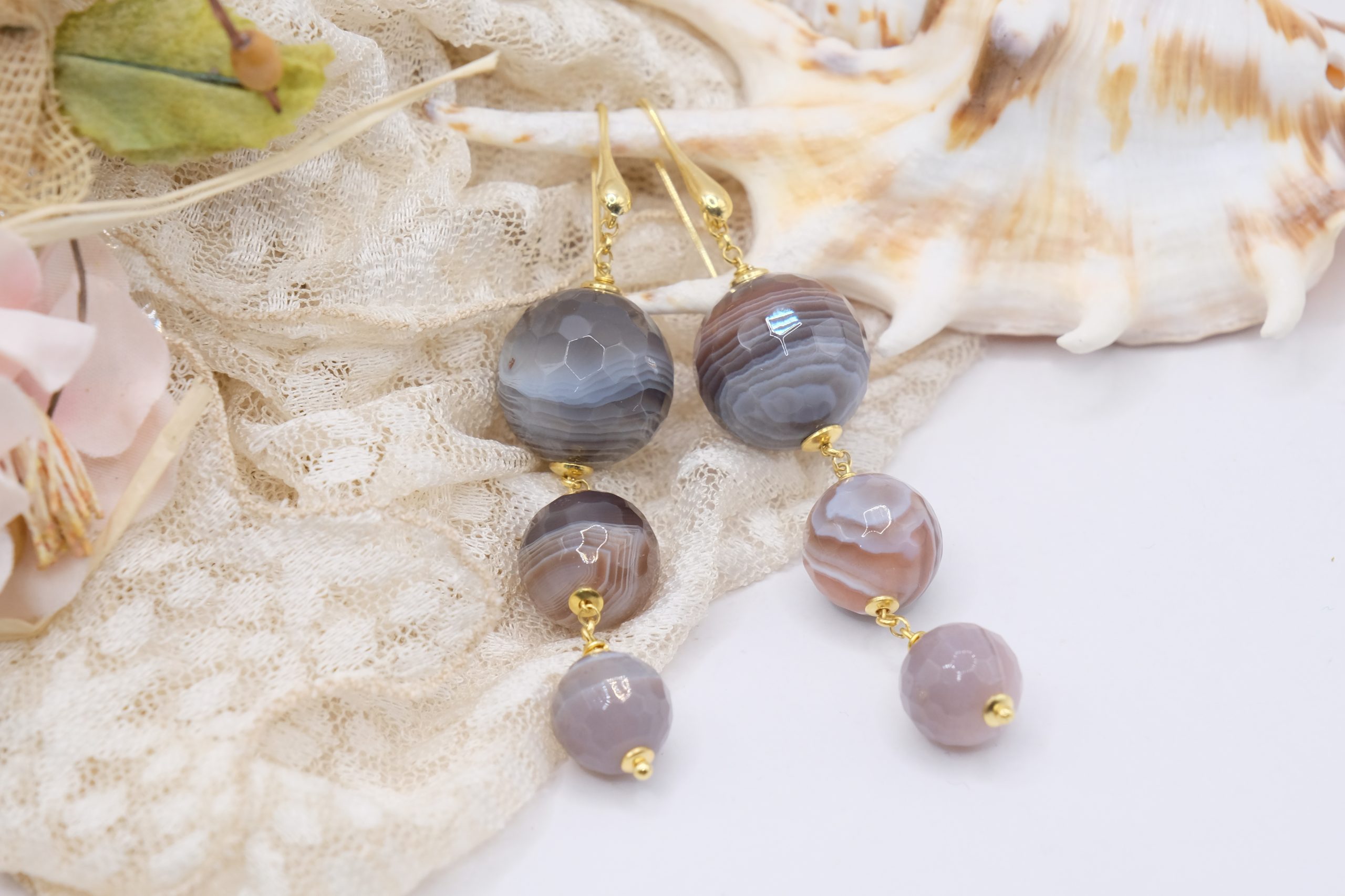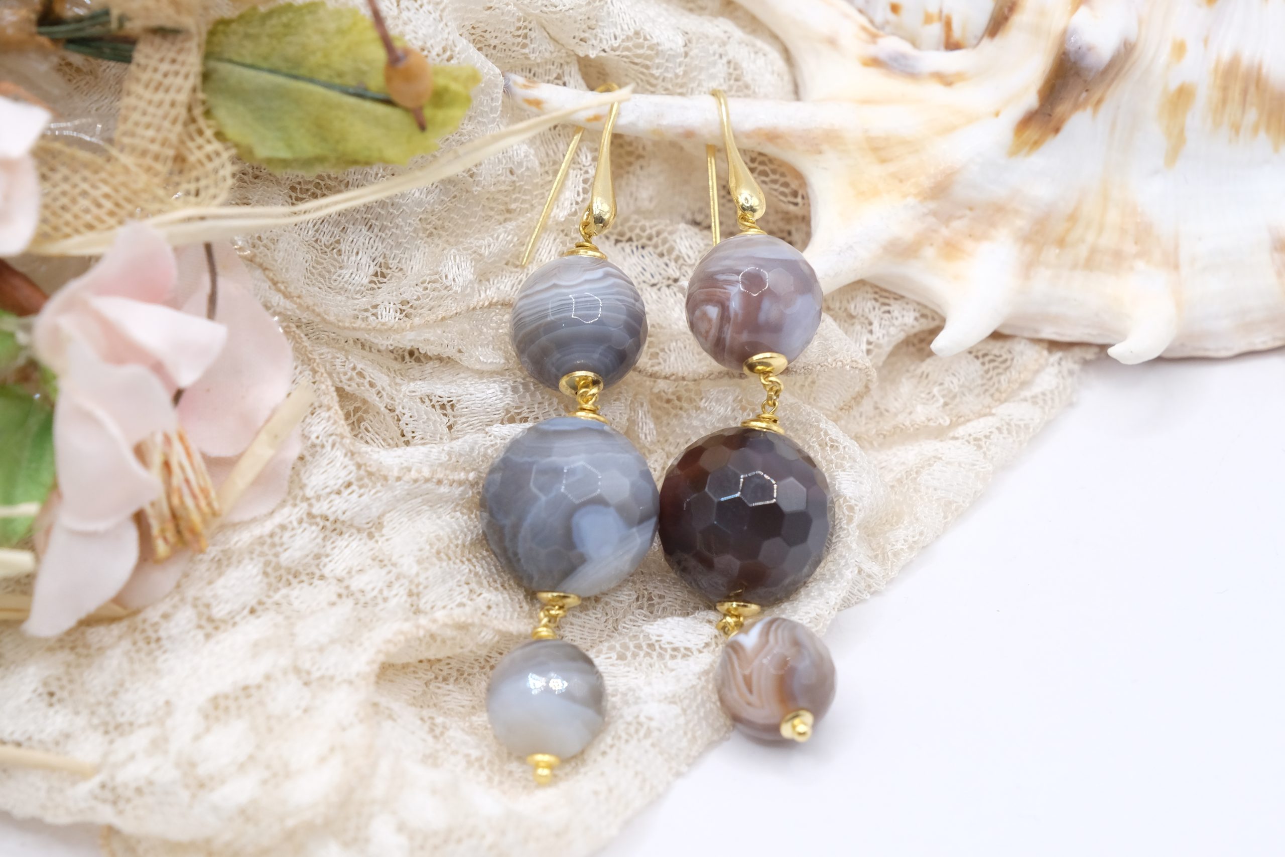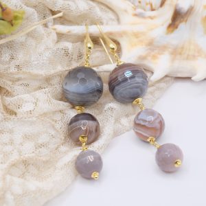 Orecchini artigianali con Agata Botswnana naturale