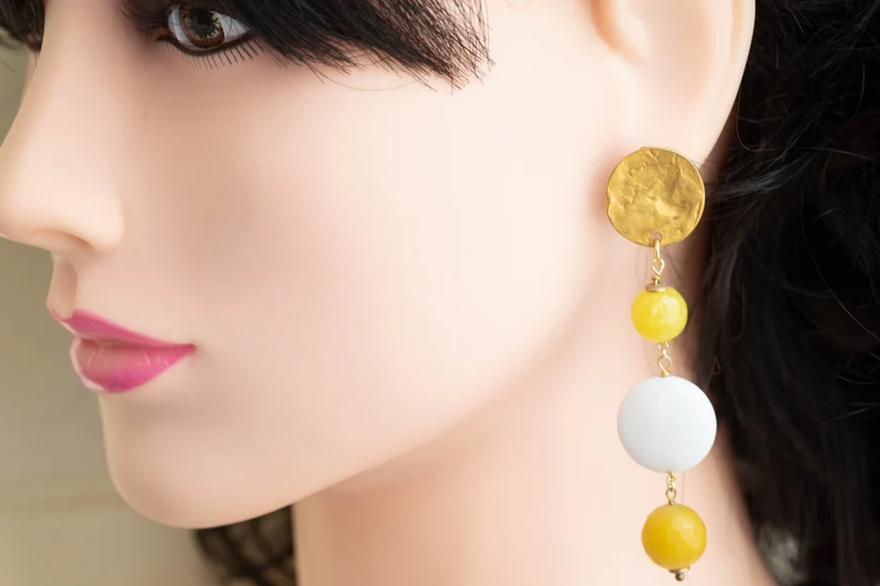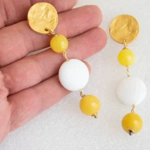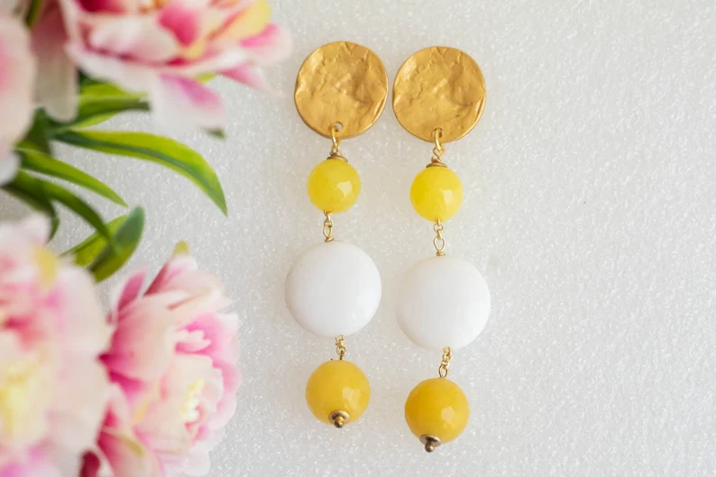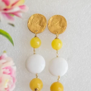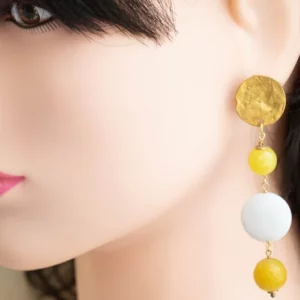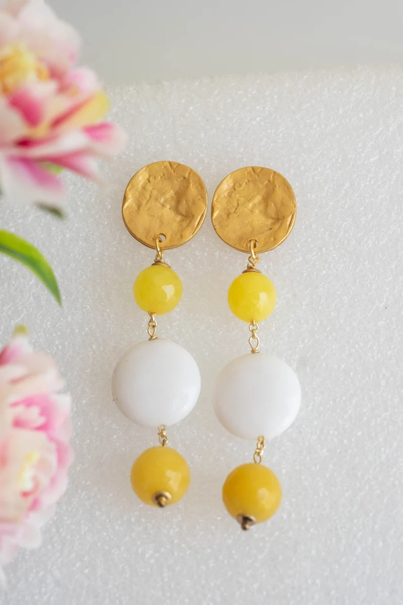 Orecchini Pendenti Giada Lemon, Agata Bianca e Ottone