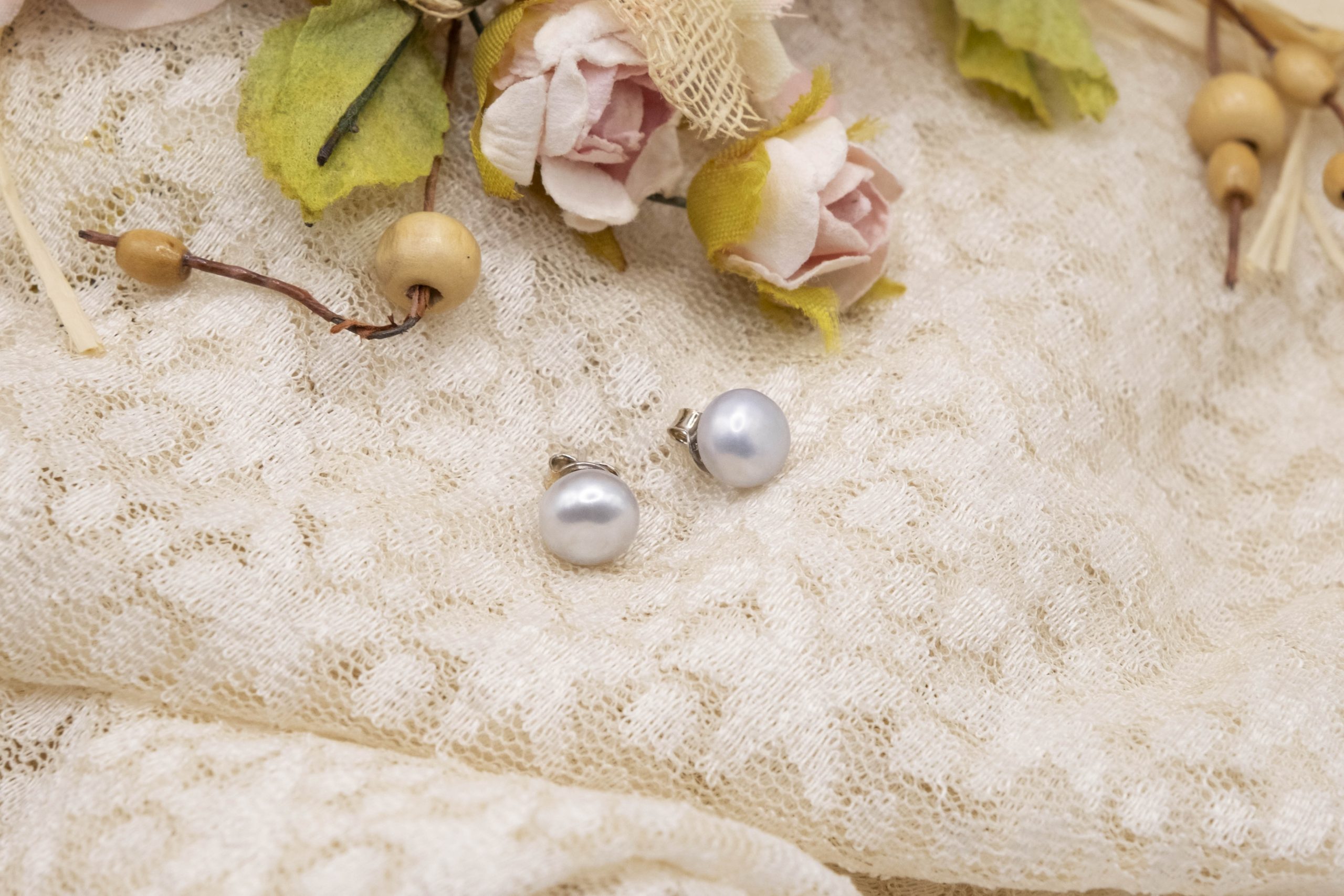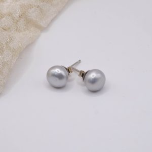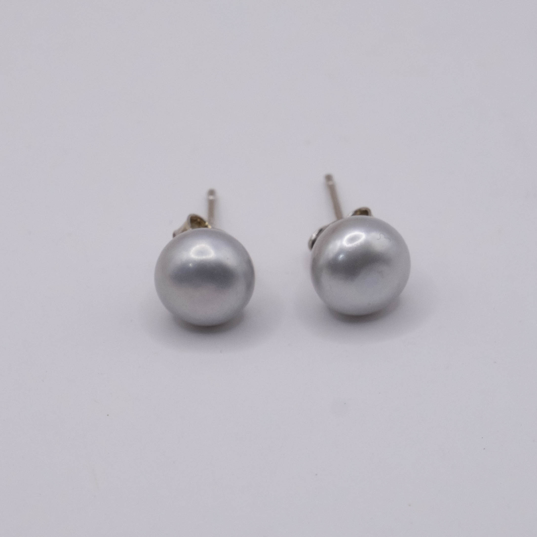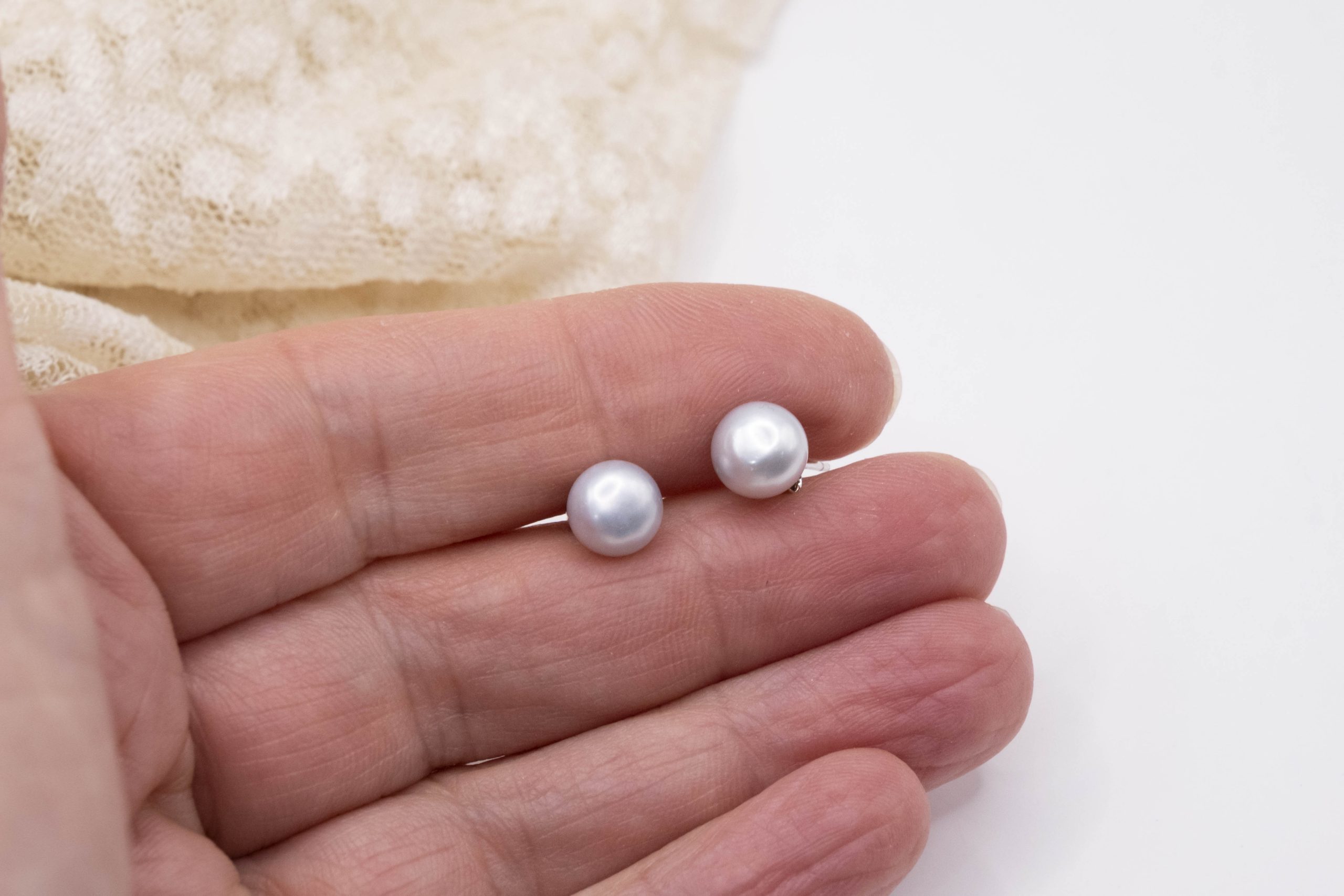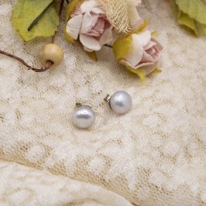 Deliziosi orecchini a lobo con luminose perle grigio chiaro naturali da 7.5/8 mm.