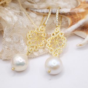 Orecchini perle Barocche Argento 925 Zirconi Gold