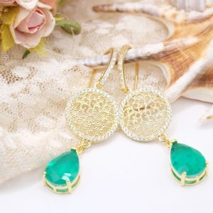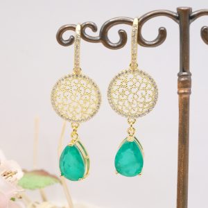 Orecchini Quarzo Verde Argento 925 Zirconi Gold